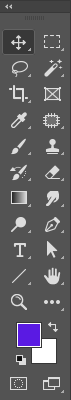 4) 도구 바 - 가장 많이 사용하는 기능을 모아둔 패널입니다. 포토샵 배우기에 중점적으로 다룰 툴입니다.